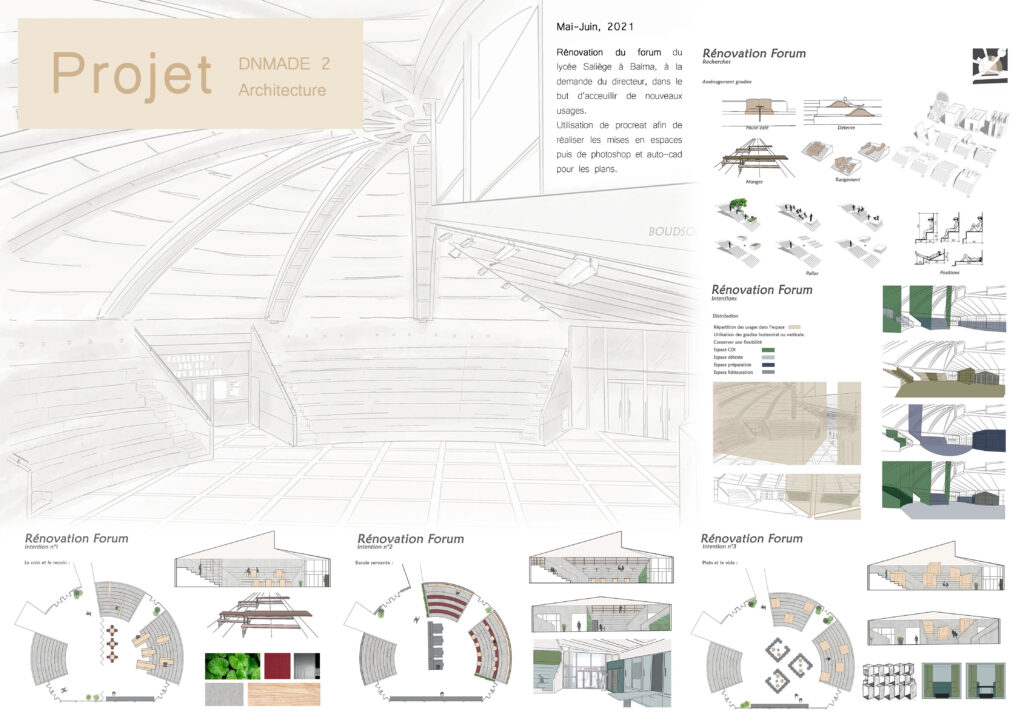 Ma formation en architecture d’intérieur m’a appris à regarder, à composer et à donner du sens à l’esthétique. J’y ai développé une vraie sensibilité pour l’harmonie des formes, des couleurs et des volumes, ainsi qu’un goût pour les rendus clairs et lisibles.